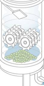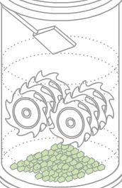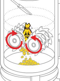 Le broyage commence dès la fermeture du couvercle. Les éléments du broyeur sont fabriqués dans un matériau parmi les plus résistants du marché. Le broyeur est constitué de couteaux qui travaillent en direction opposée, avec une inversion de la rotation à intervalles réguliers.