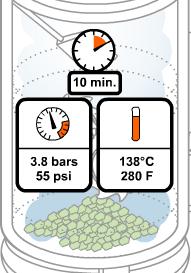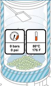 Le chauffage s’effectue par admission de vapeur saturée qui fait monter la température à 138°C et la pression à 3,8 bars.